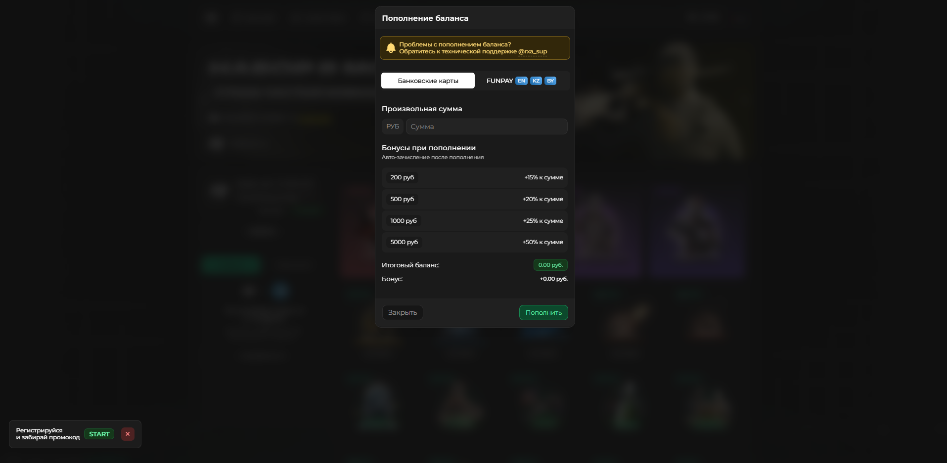 2) Кастомные “Бонусы при пополнении"