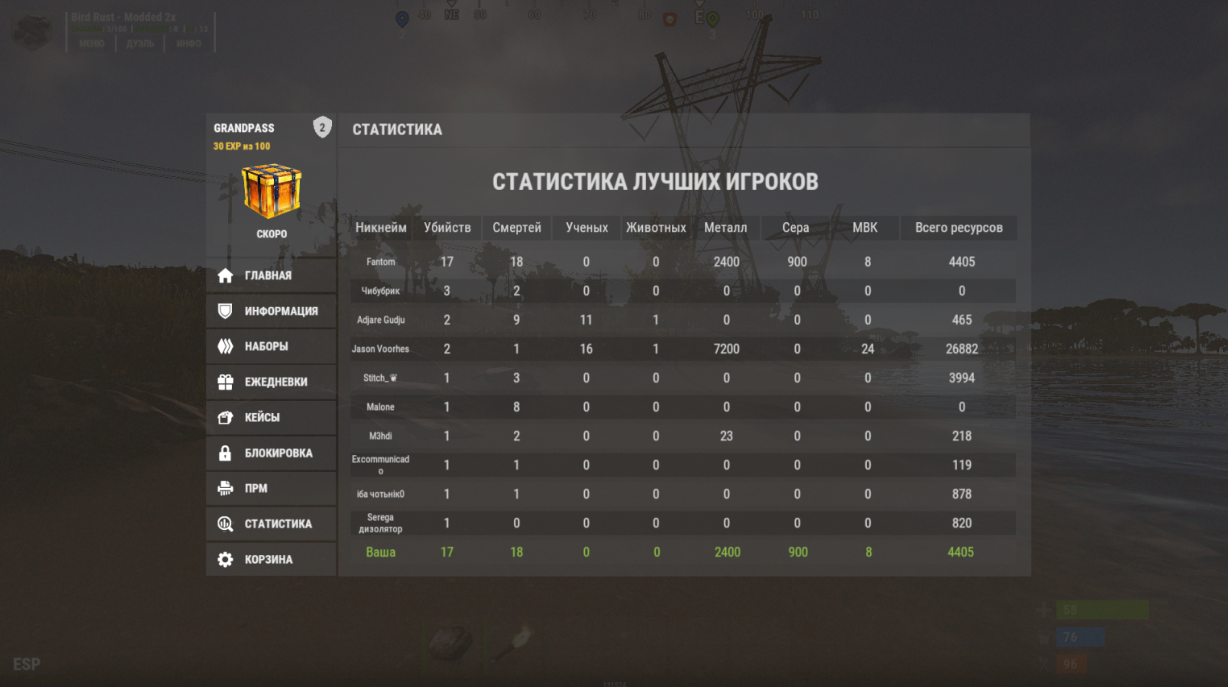 - СТАТИСТИКА: прогресс игрока, K/D, активность, топы — мотивация соревноваться.