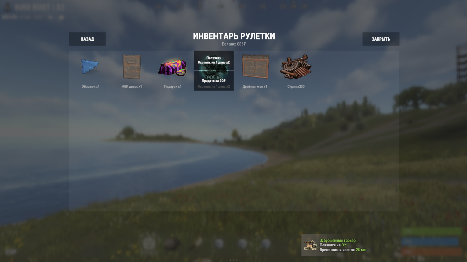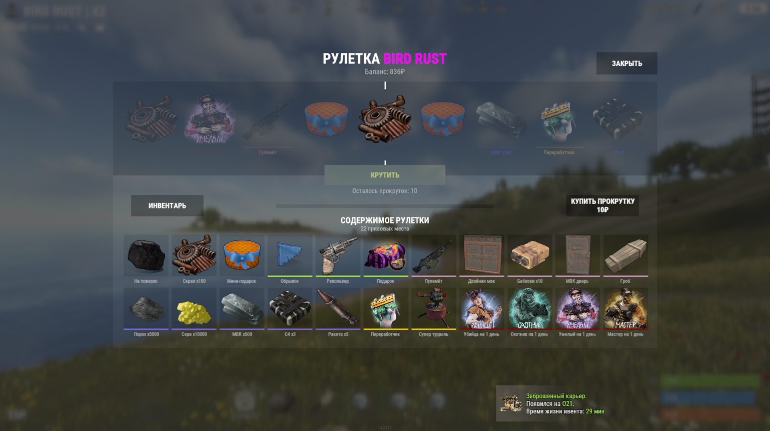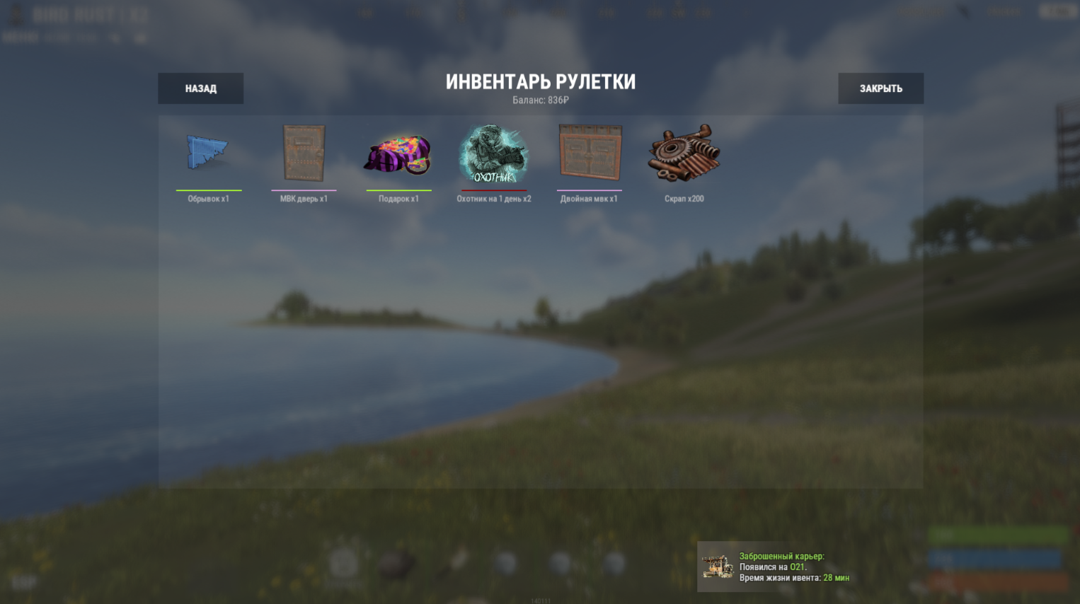 - Приз попадает на “СКЛАД” (инвентарь рулетки)