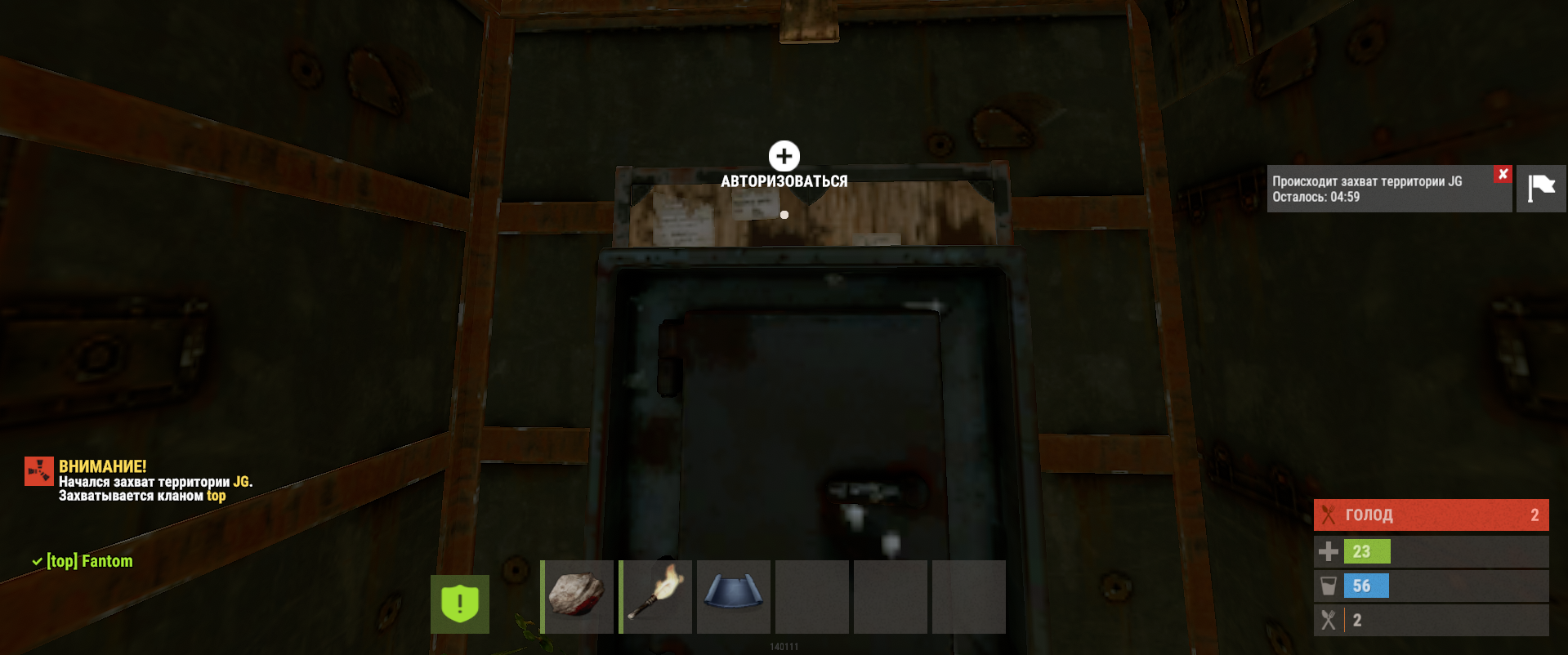 * 1. Глава клана подходит к шкафу территории и авторизуется