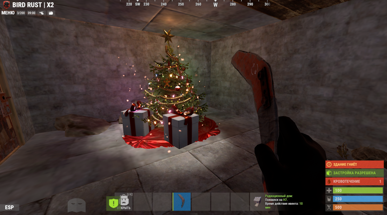 На сервере запущен новогодний ивент. Поставь новогоднюю ёлку, укрась её всеми игрушками — и как только ёлка будет полностью украшена, каждый час под ней будут появляться подарки.Как участвовать:- Поставь ёлку на базе