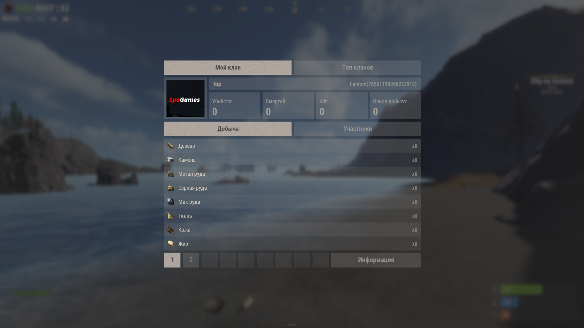 Позволяет игрокам создавать кланы, приглашать участников, вести учёт очков и добычи,