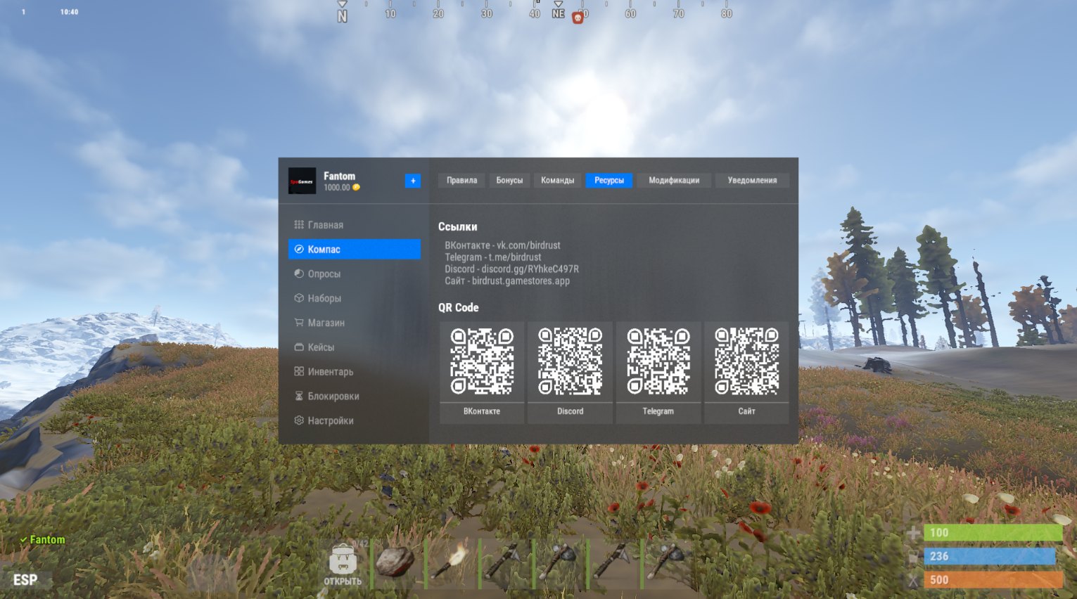 - 🎮 **RP серверы** — Опросы, компас с информацией, кастомизация чата